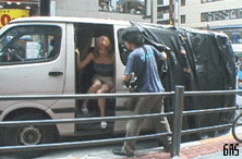 ※一番やりたかったのは「足臭男ナンパ」。彼女は足の臭い男が大好き!なので(これホント)、街頭で道行く男達の足の臭いを香がしてもらうという絵を撮りたかった。